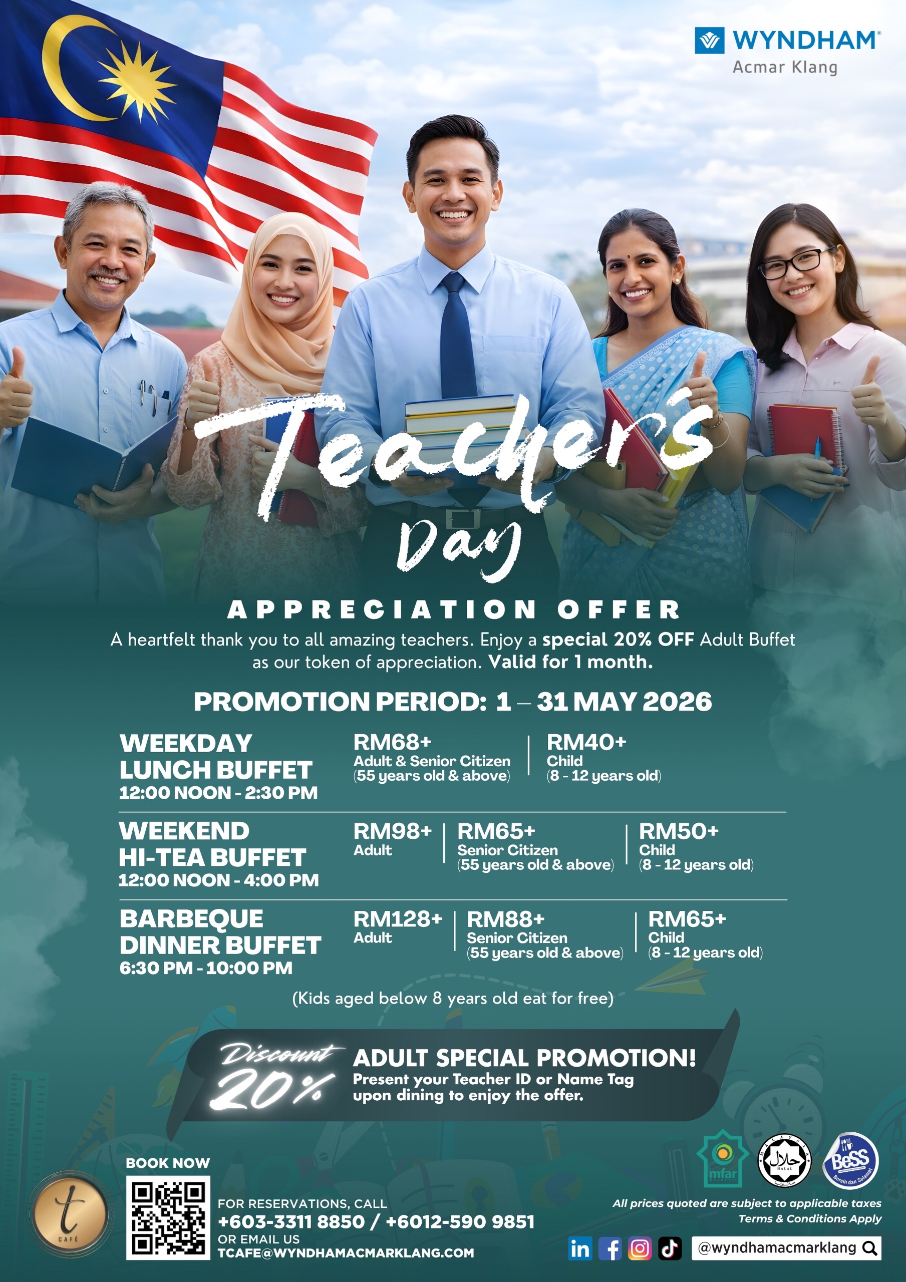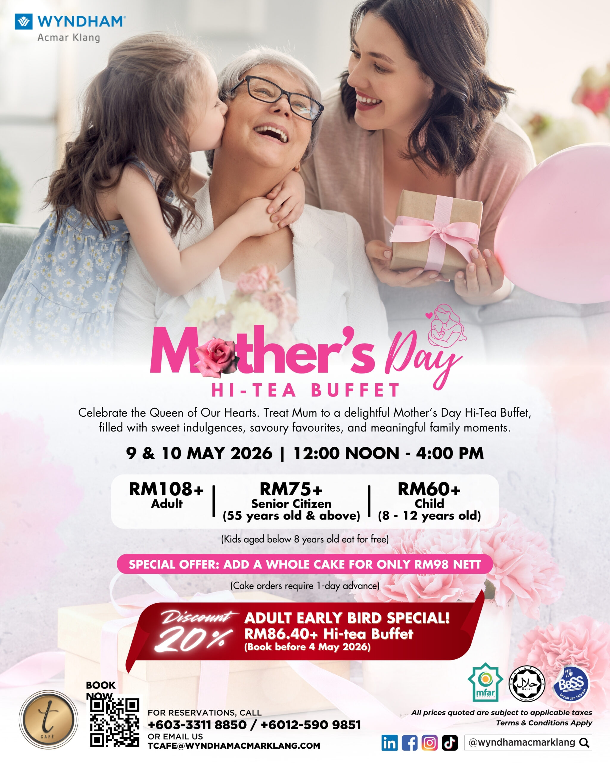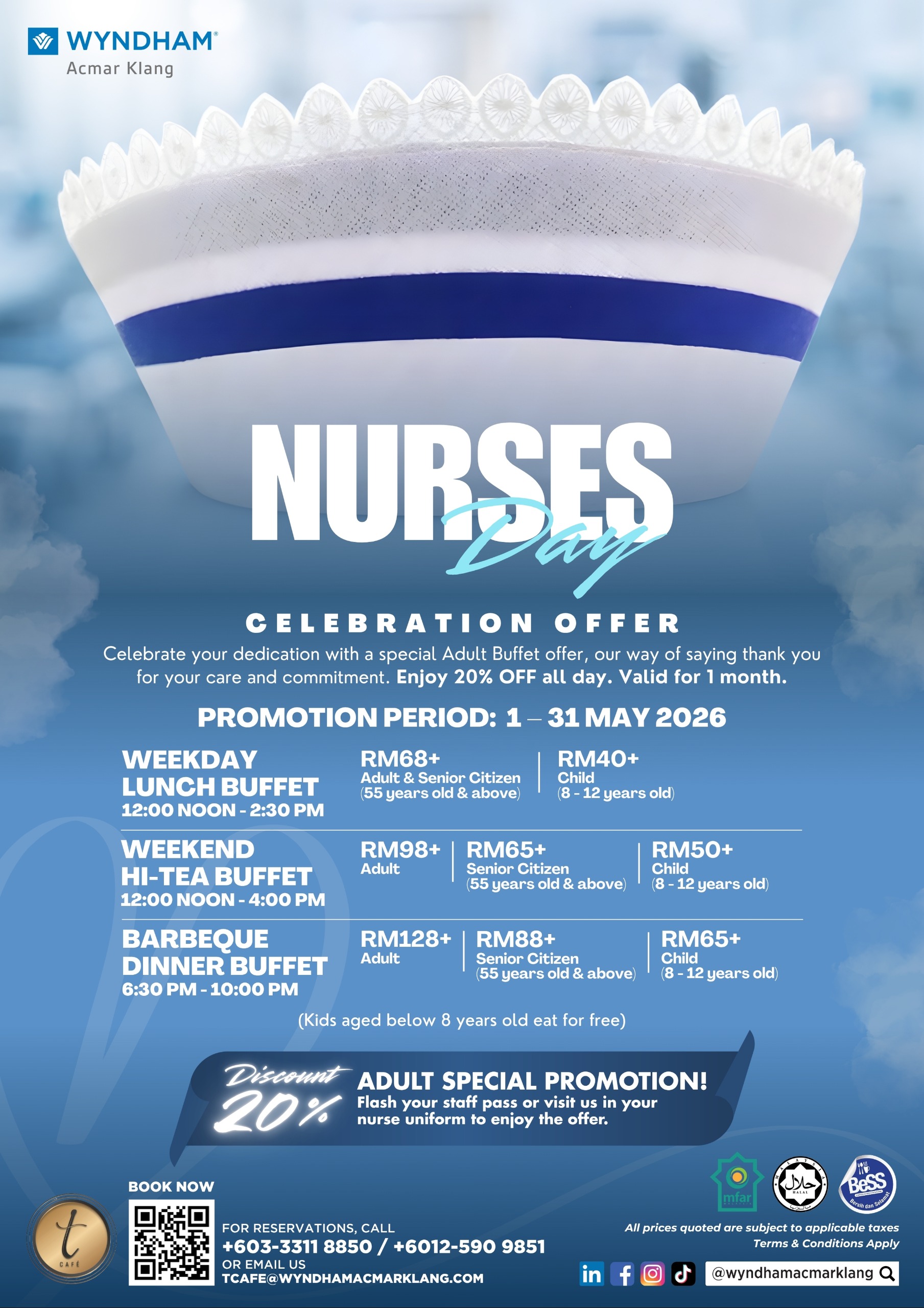 Celebrate the spirit of Syawal with a memorable private open house at T Café, Wyndham Acmar Klang. Host your corporate gathering or family celebration while indulging in a beautifully curated buffet spread of festive Raya favourites.