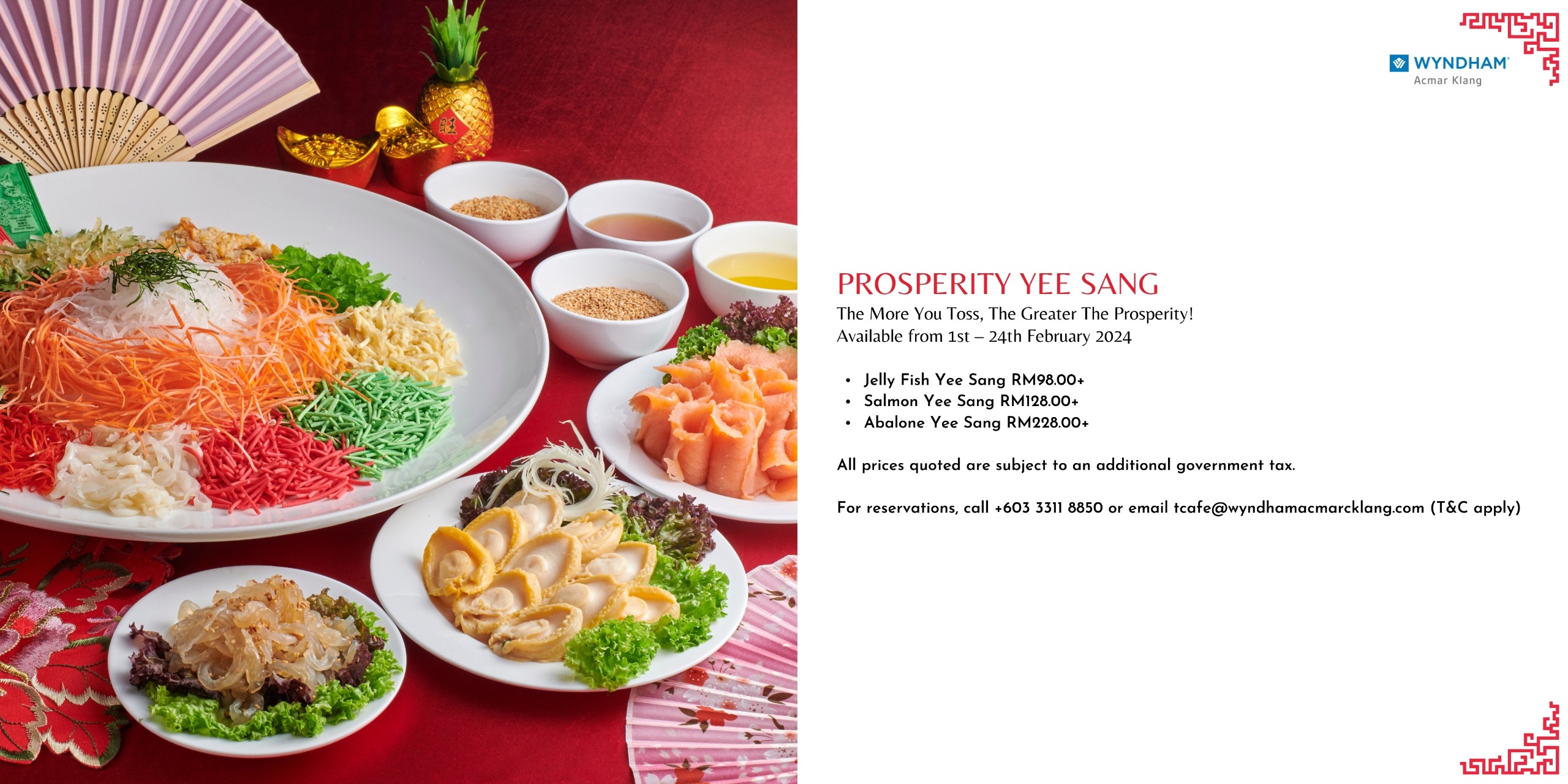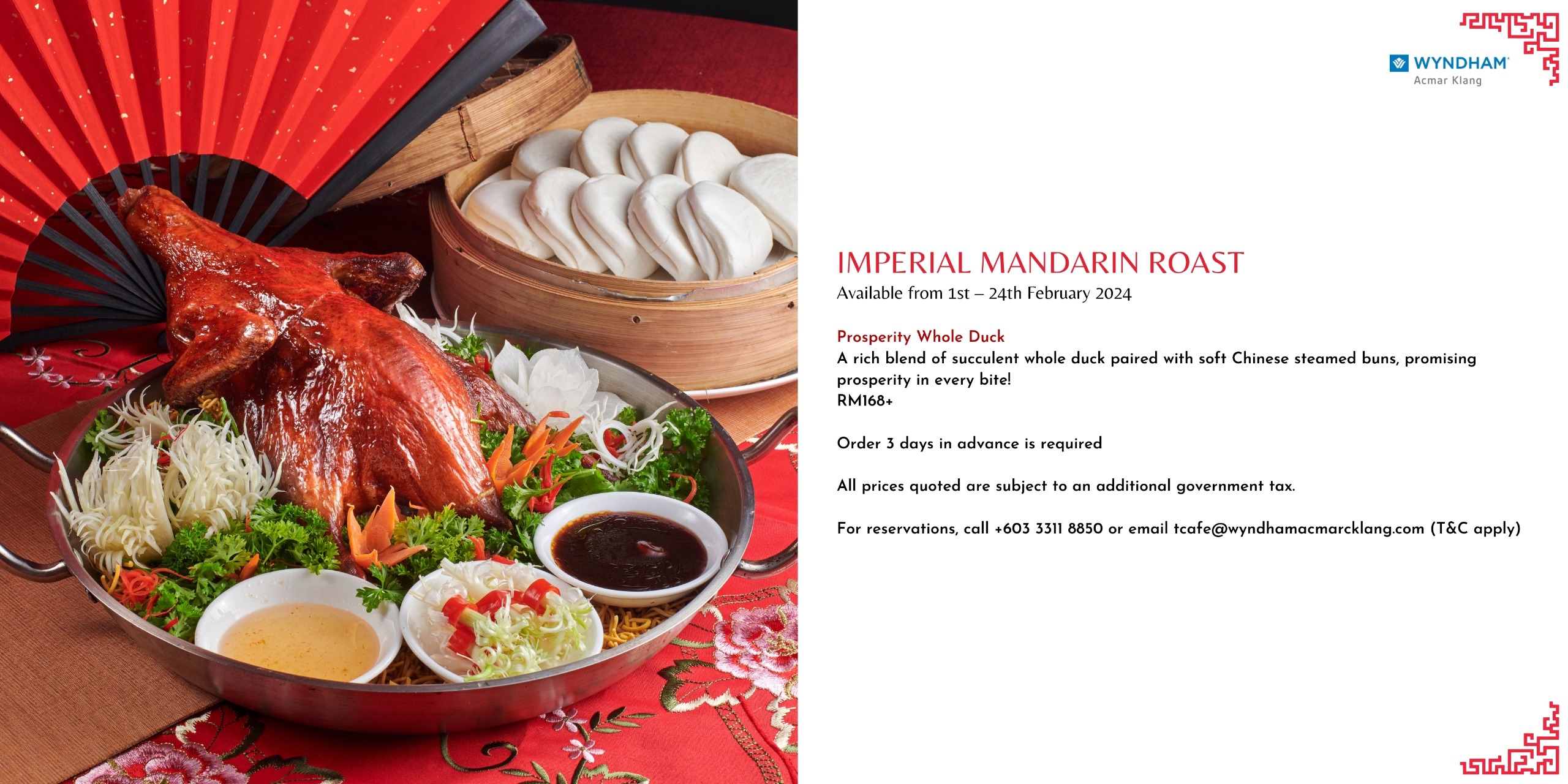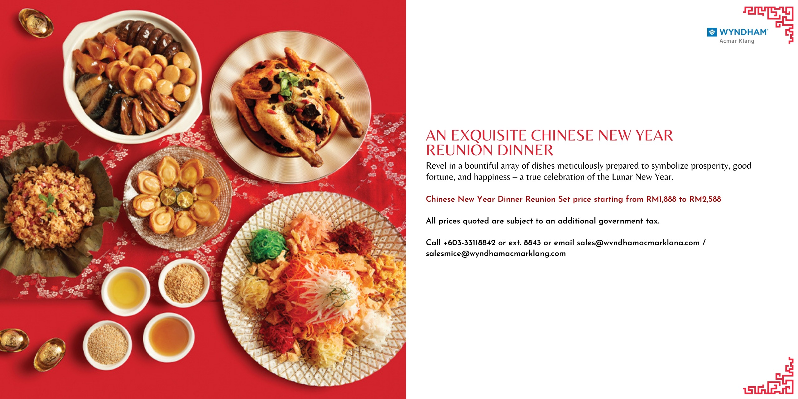 For reservations and inquiries, contact us at +603-33118888 or +603-33118850. WhatsApp at +6012-285 8340 or +6012-590 9851 or +6012-519 8081.