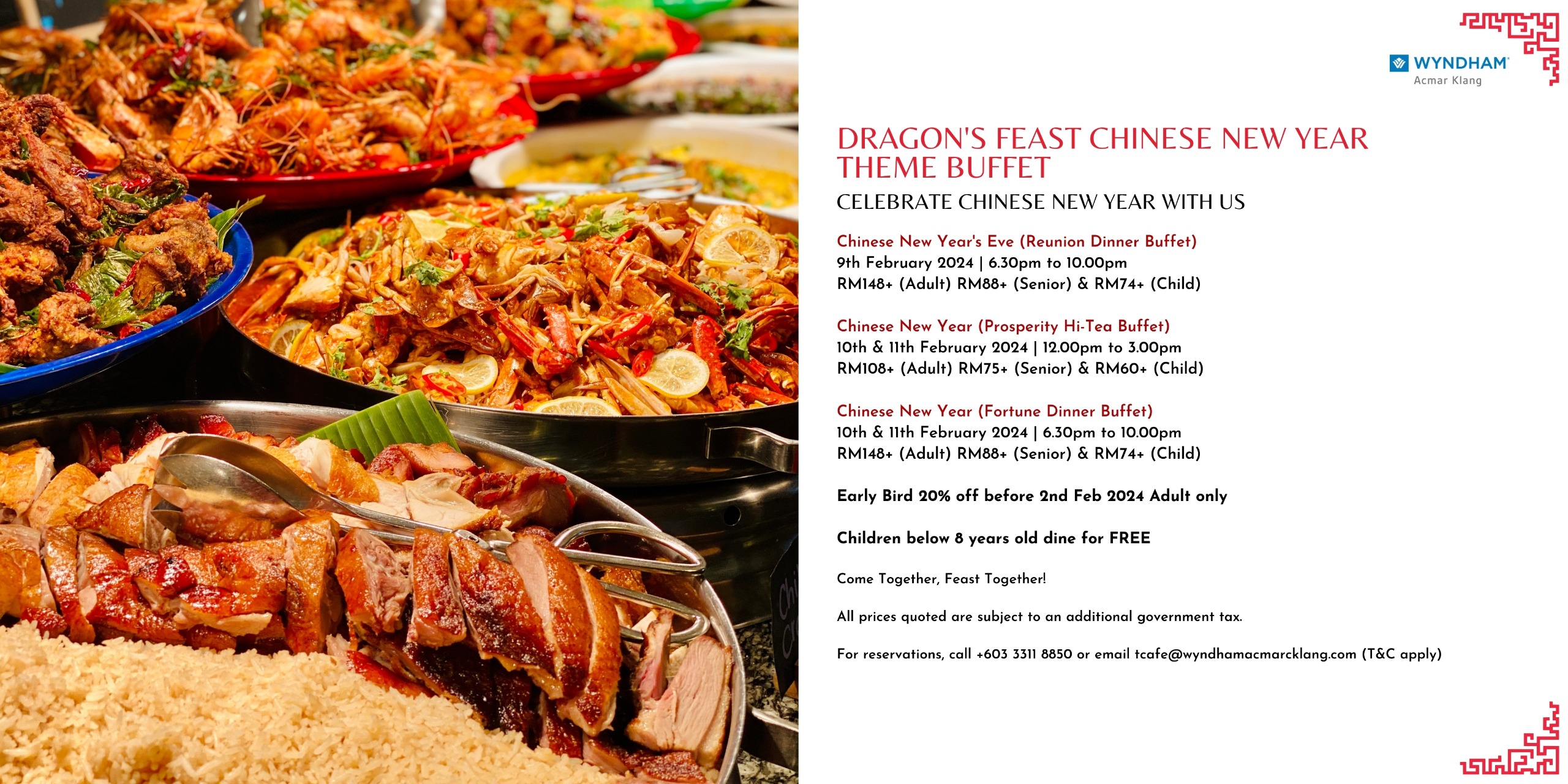 CNY special Hi Tea available on 10 & 11 February 2024; CNY special Dinner Buffet available on 9-11 February 2024.