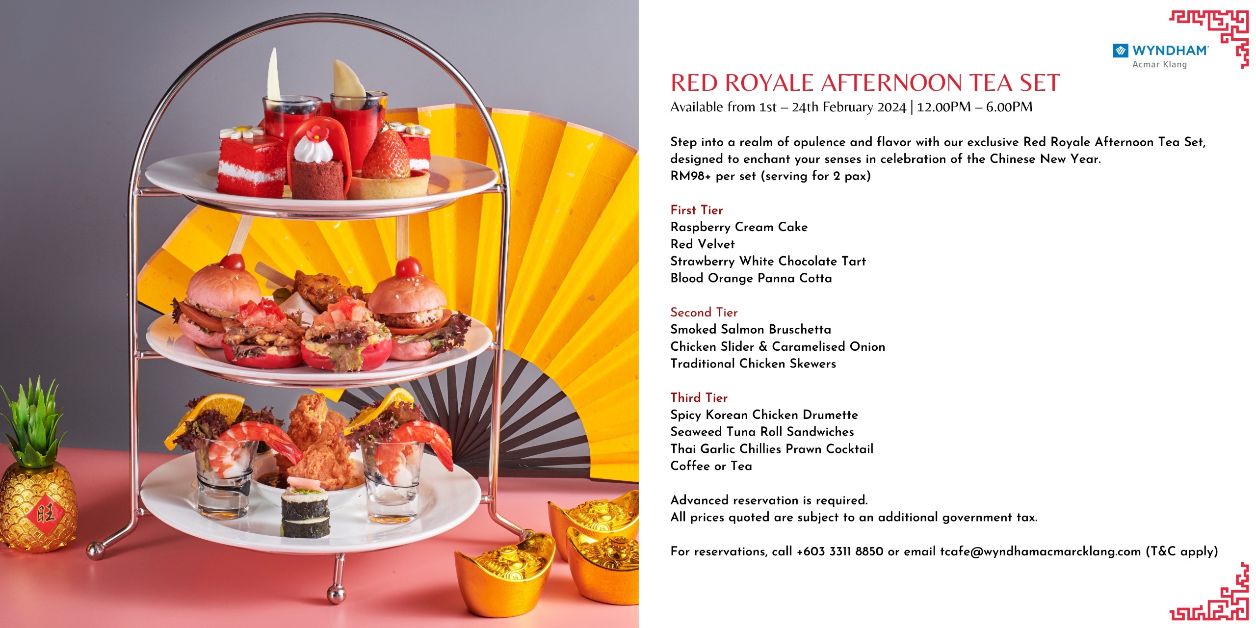 Enjoy a delightful afternoon with our Red Royale Afternoon Tea Set, featuring a selection of Chinese New Year-inspired treats.